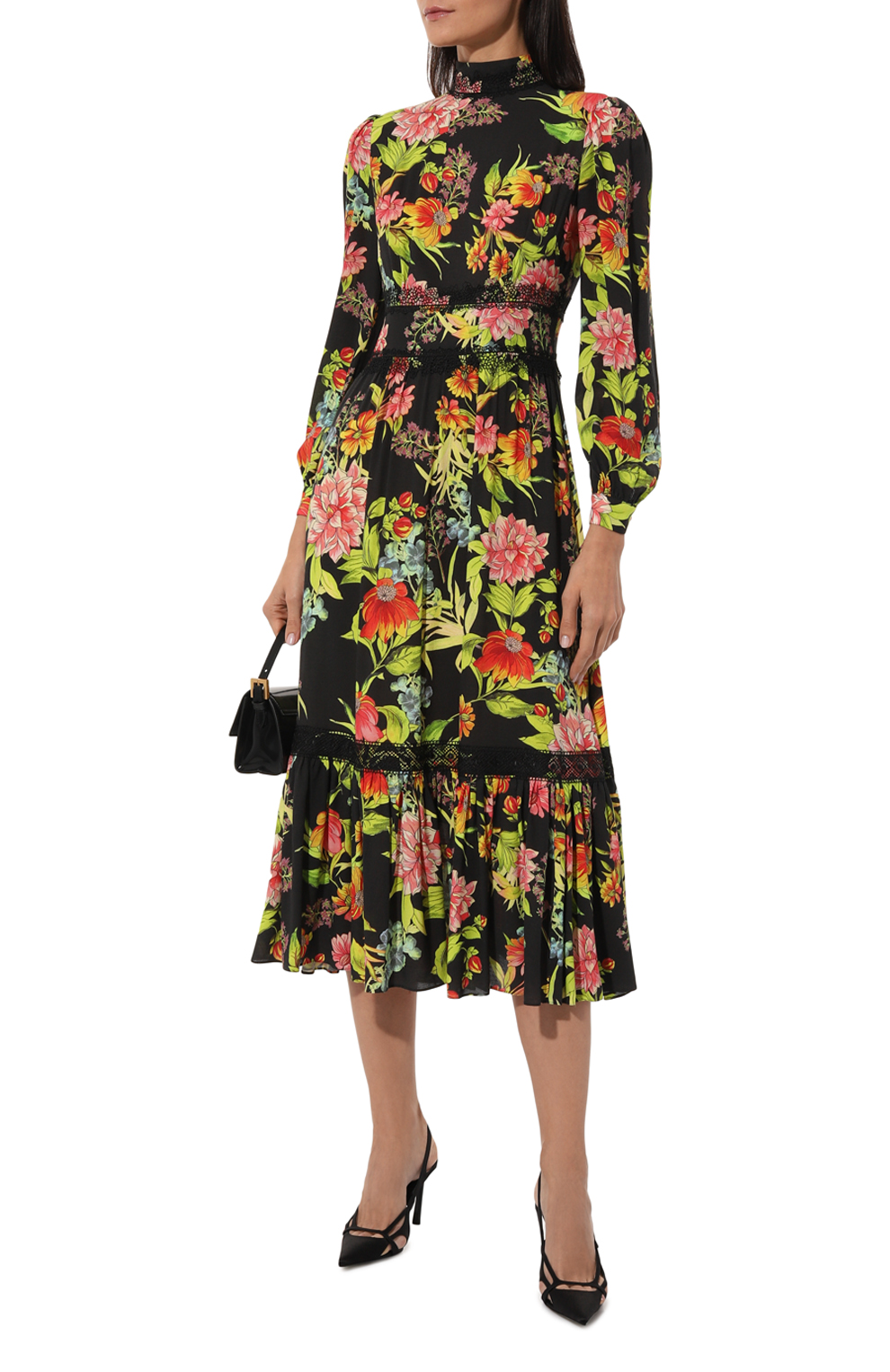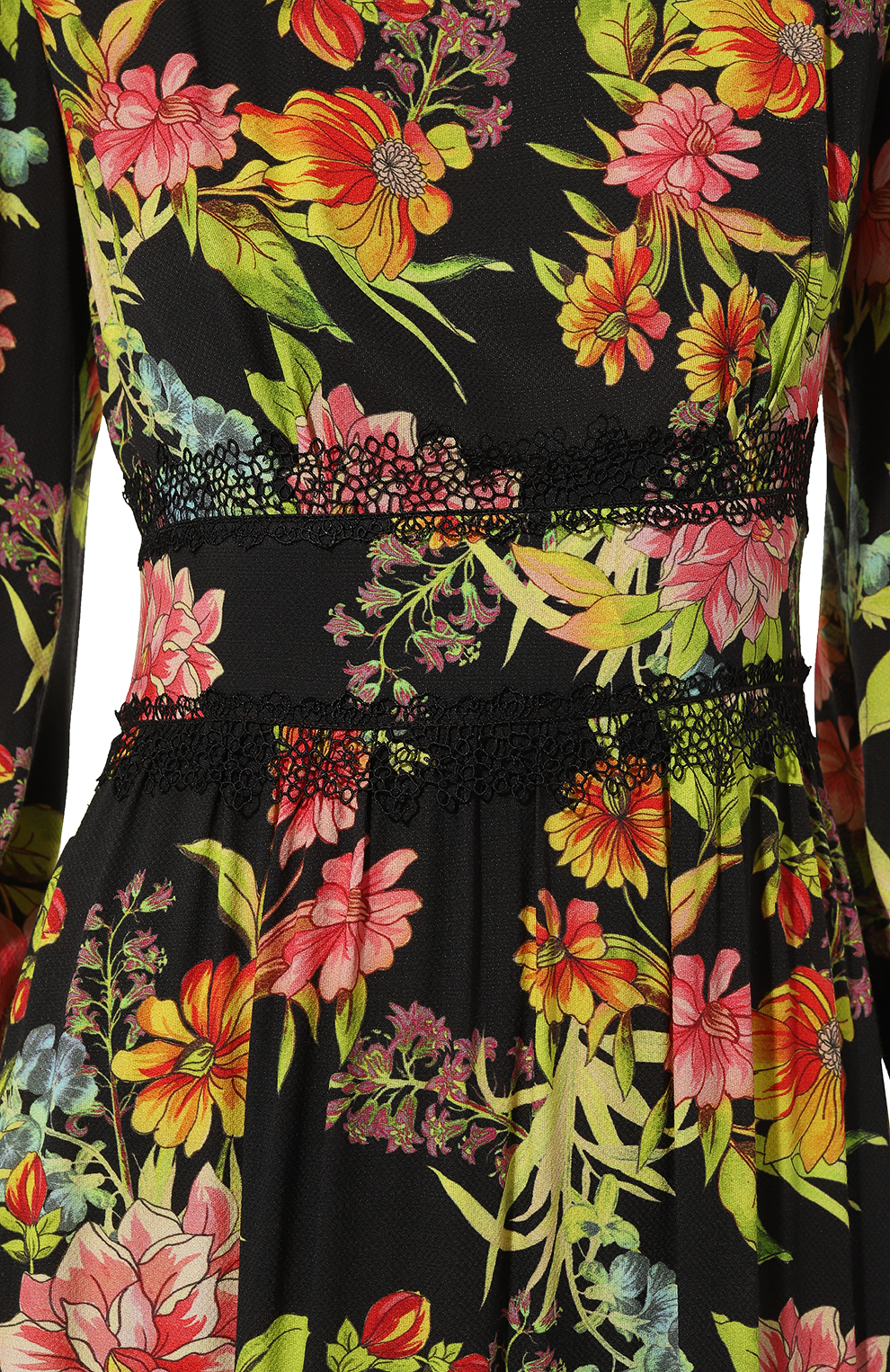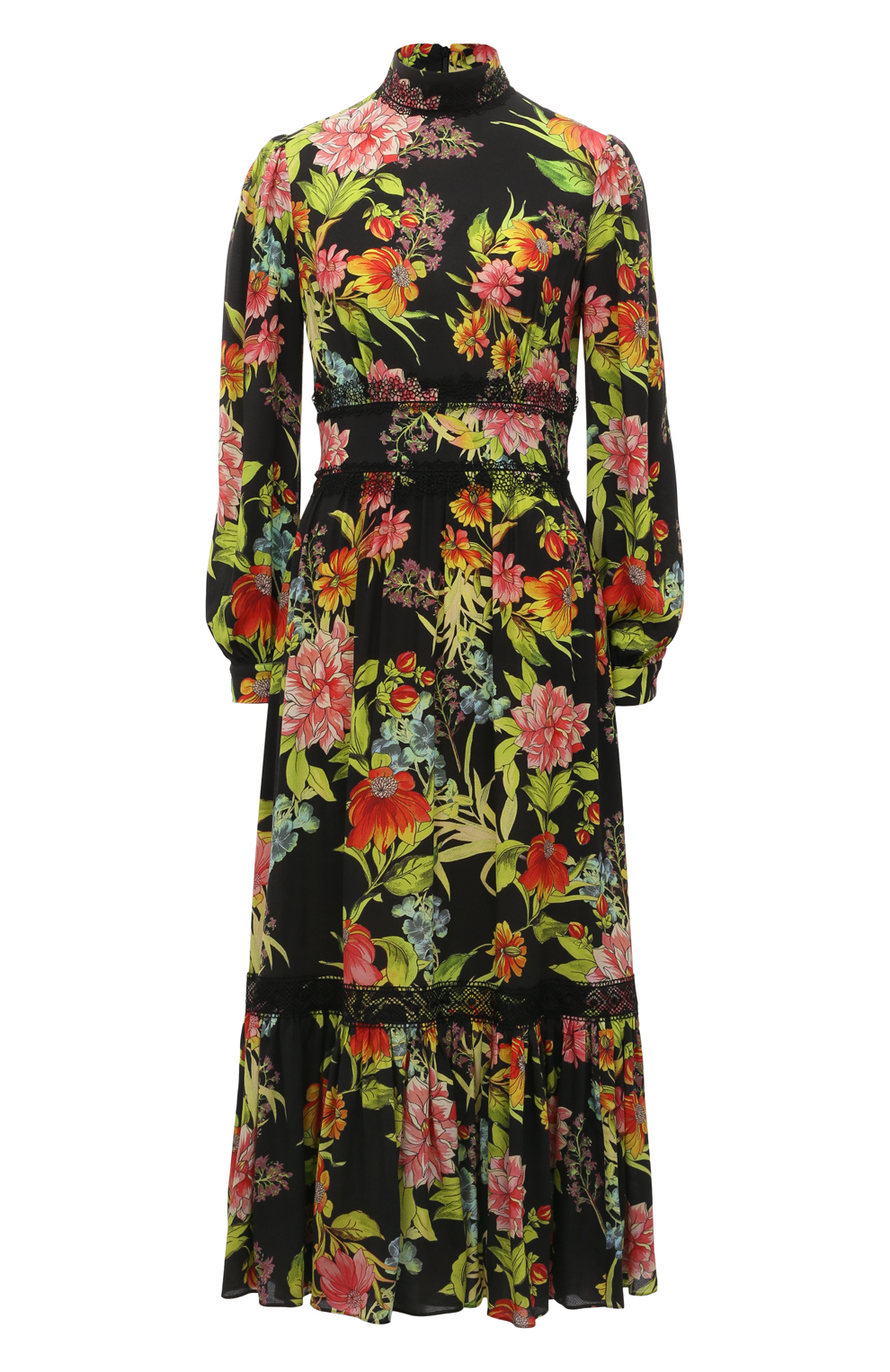 Платье Флауерфьюжн выполнено из струящегося текстиля, 100 % вискозы. Модель приталенная, со свободным низом, размер S/M